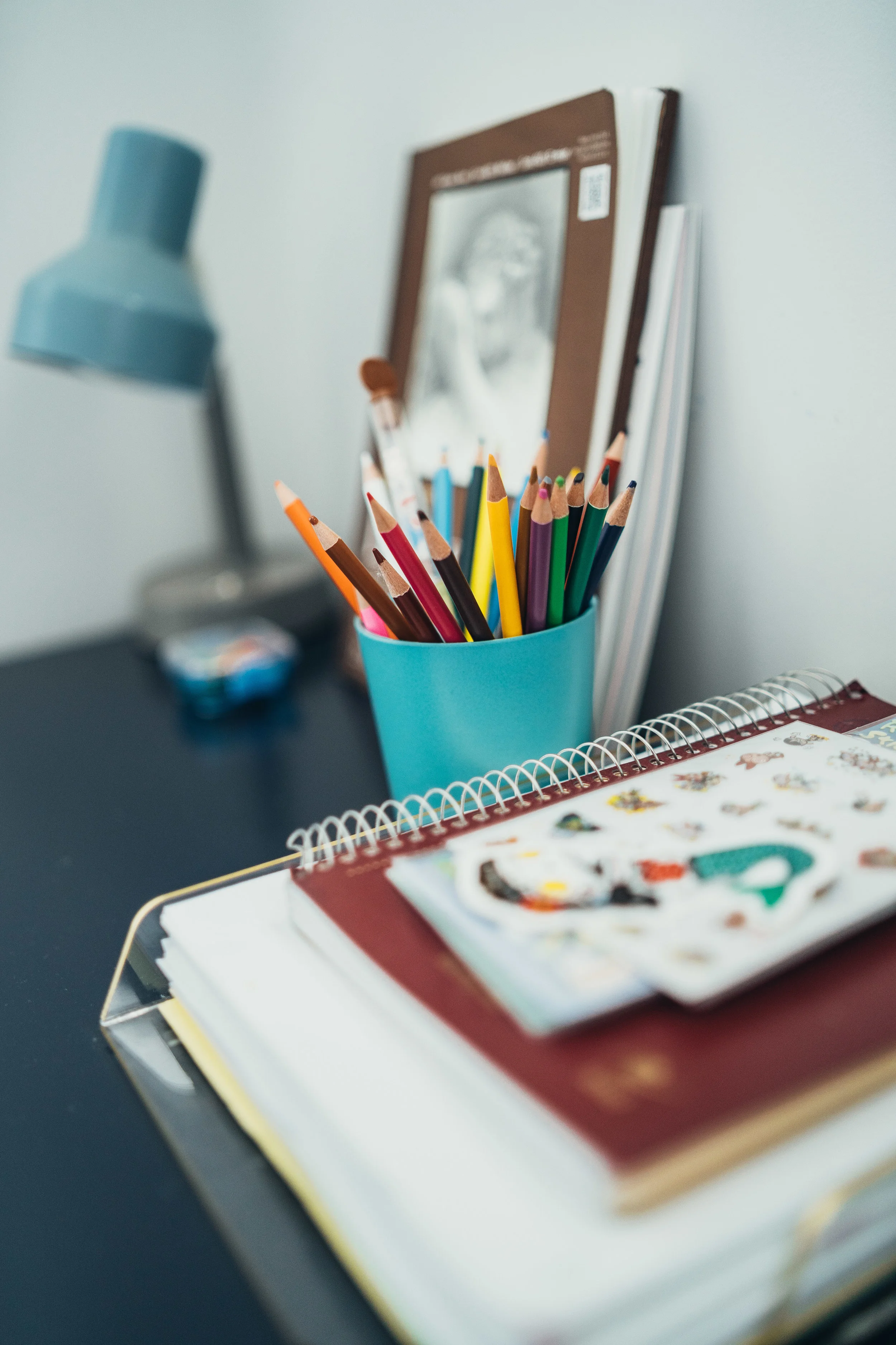 The space was narrow but he somehow managed to find exactly what she were looking for. Nadia loves to draw so a desk was a must. The navy blue Parsons Mini Desk from Pottery Barn Kids and the petrol blue Emilia Nightstand from West Elm worked like magic. All of the different shades of blue came together along side the different patterns of black and white.